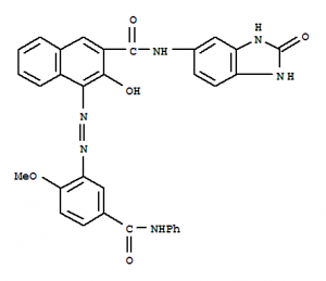 The 2-Naphthalenecarboxamide,N-(2,3-dihydro-2-oxo-1H-benzimidazol-5-yl)-3-hydroxy-4-[2-[2-methoxy-5-[(phenylamino)carbonyl]phenyl]diazenyl]- is an organic compound with the formula C32H24N6O5. The systematic name of this chemical is 3-hydroxy-4-[2-methoxy-5-(phenylcarbamoyl)phenyl]azo-N-(2-oxo-1,3-dihydrobenzimidazol-5-yl)naphthalene-2-carboxamide. With the CAS registry number 12225-06-8, it is also named as N-(2,3-dihydro-2-oxo-1H-benzimidazol-5-yl)-3-hydroxy-4-[[2-methoxy-5-[(phenylamino)carbonyl]phenyl]azo]naphthalene-2-carboxamide. The product's category is Organics.